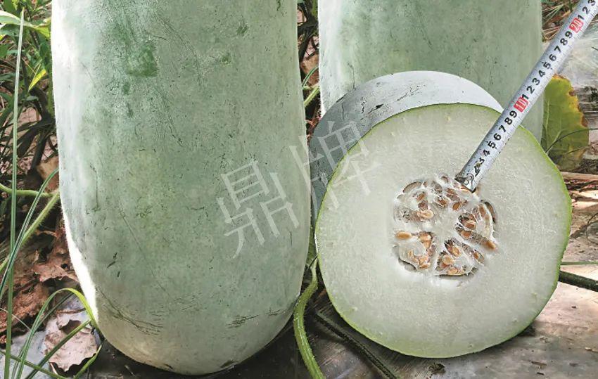 二是,看瓜不大,卻鐵重,單果重可達25-30斤,原因是瓜腔小,果肉厚實。一般粉皮冬瓜的肉厚只有4~5厘米,而“大肉紅燒”冬瓜的肉厚可達8厘米,這是粉皮冬瓜中見不到的品種。