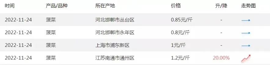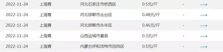 今年下半年受疫情等因素的影響,菜價不好。大家看看11月份的葉類蔬菜價格,有一個比較。