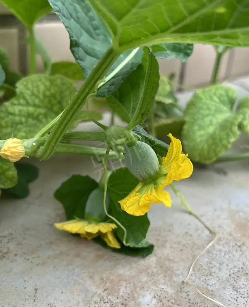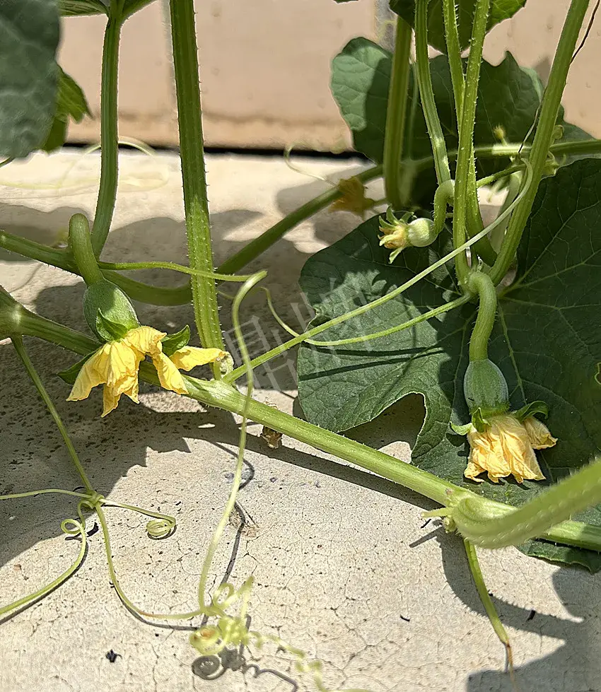今日請(qǐng)各位看看本公司科研人員做的一個(gè)奇葩試驗(yàn)——在特高溫的條件下,讓甜瓜苗在水泥板上生長(zhǎng)。