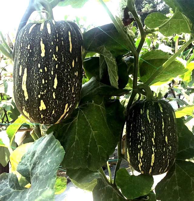▲ 開始轉(zhuǎn)色的“健美蜜本”南瓜,