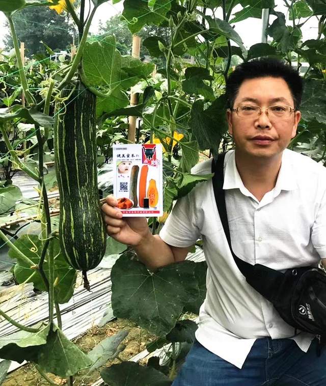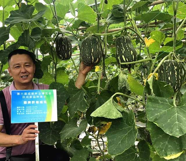 上面的圖片中,有一個(gè)新品種“胖墩”蜜本南瓜,是第一次與成都客戶見面。坐果之齊整,果形之端正,讓參觀的客戶留下了深刻印象;其品質(zhì)與“健美蜜本”南瓜一樣優(yōu)秀,生瓜都好吃!雖然胖、雖然墩,長(zhǎng)得胖胖墩墩,但瓜的空腔小,同樣沒有“大肚子”。遺憾的是,會(huì)議期間還沒有成熟,未能品嘗。該品種將于今年10月1日開始向全國(guó)推廣。