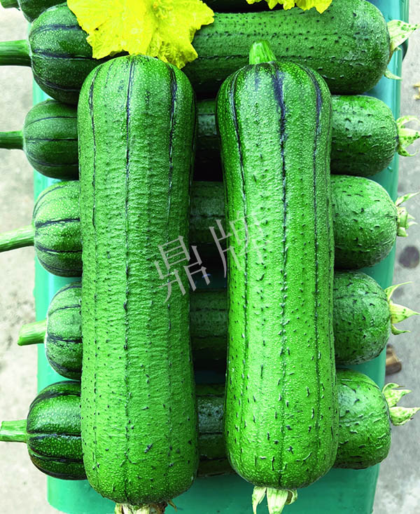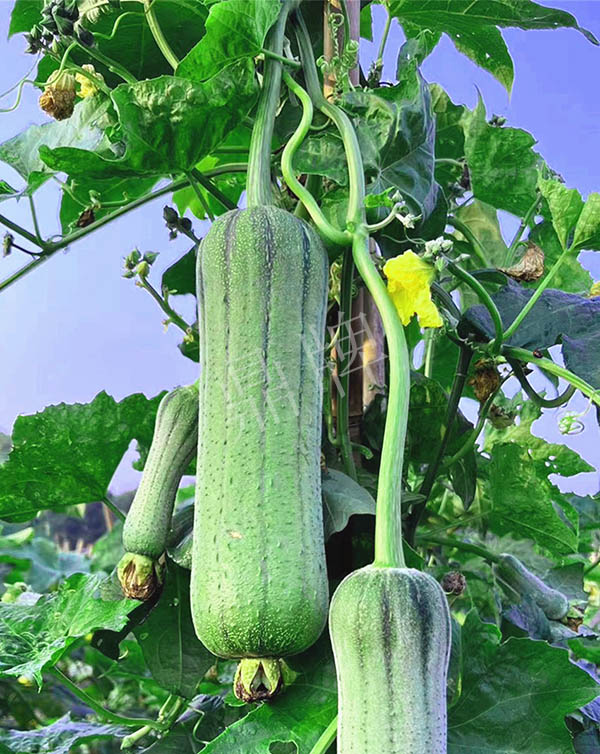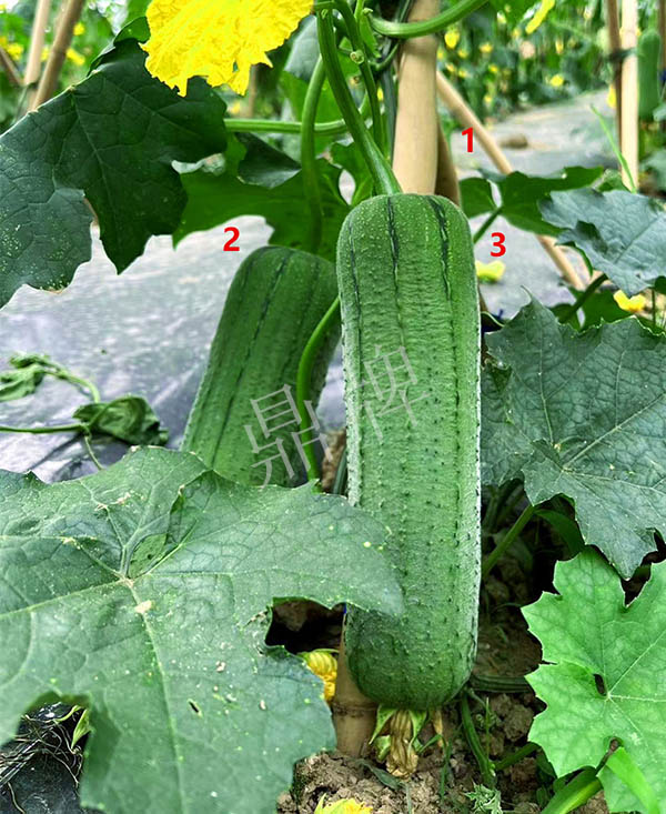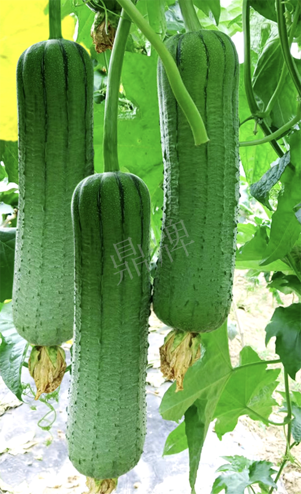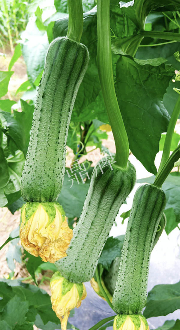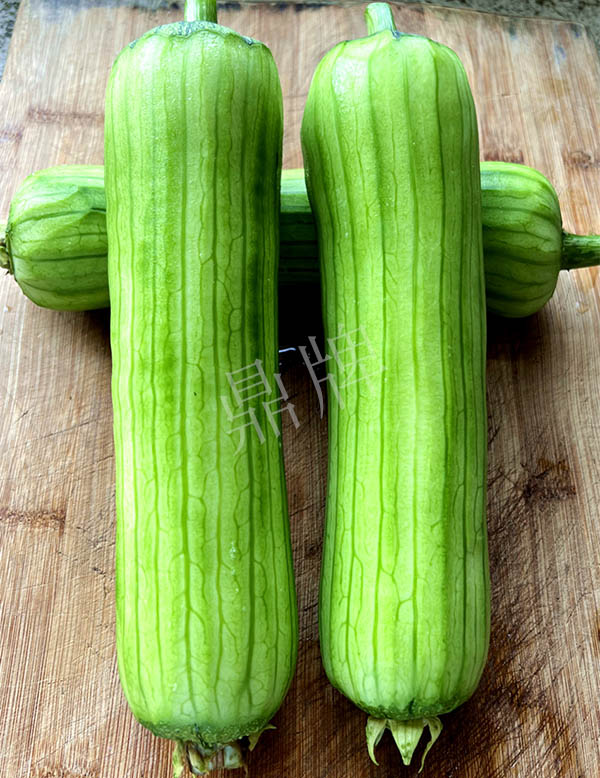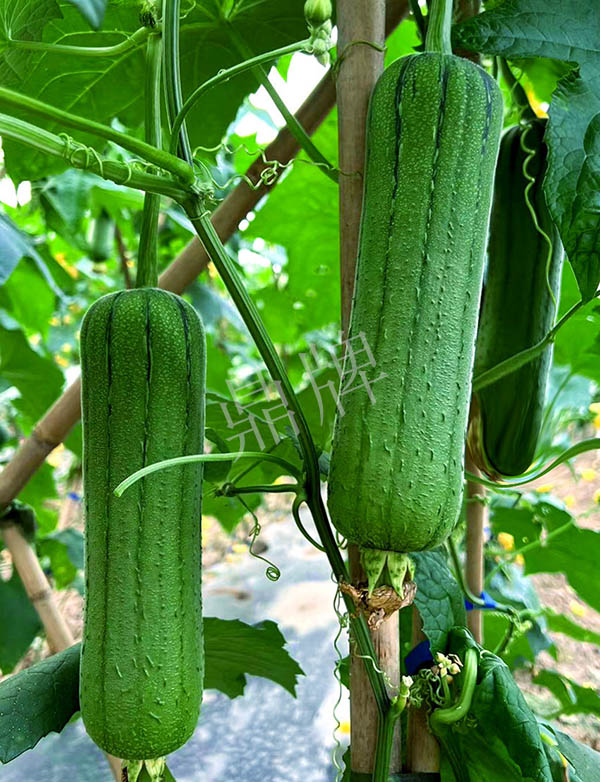 三倍體硬果絲瓜,可增產(chǎn)1倍。早熟,短棒、油光,三倍體絲瓜的果實(shí)硬度高,果肉緊實(shí),口感親甜。已申請國家新品種保護(hù)。用種:9~10袋/畝。