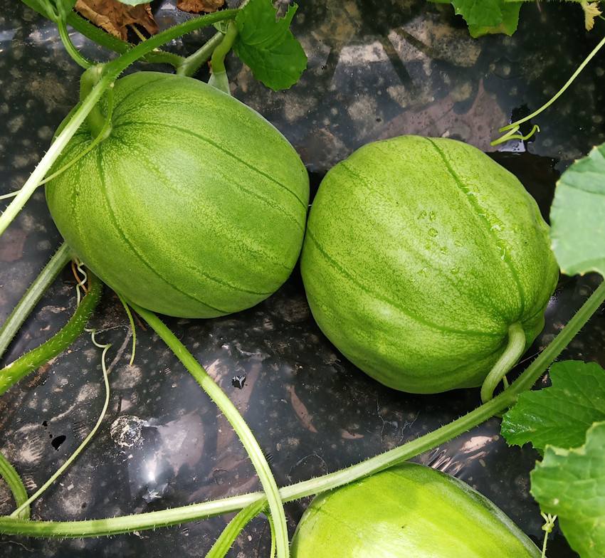 果大1.5公斤,以常規(guī)品種“丑八怪”為母本雜交而成,產(chǎn)量、品質(zhì)都有提高。皮韌肉脆,甜度高達18.5度。爬地1~2袋/畝、吊蔓5袋/畝。