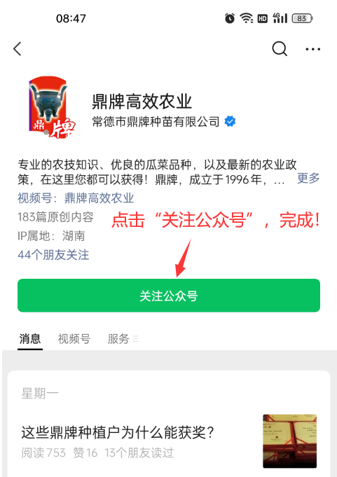 如何關(guān)注“鼎牌高效農(nóng)業(yè)”公眾號